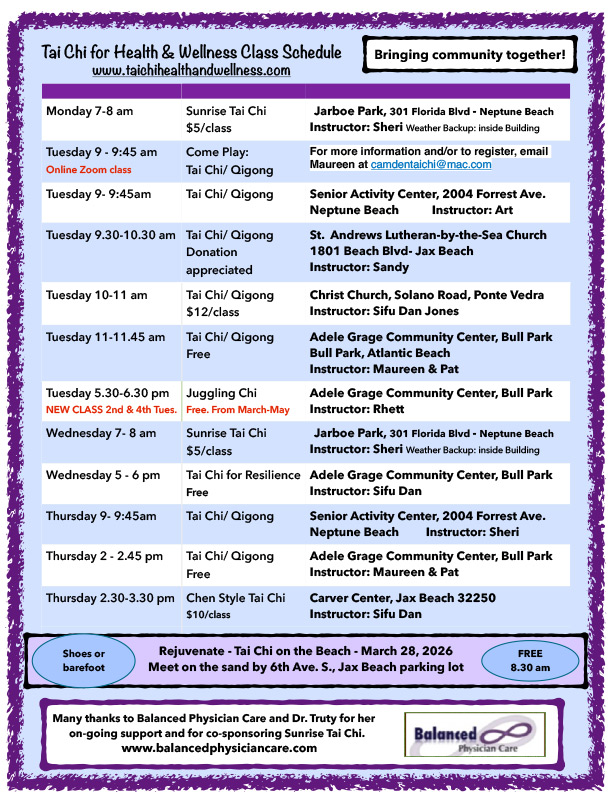 “Improve posture and enhance Healthy Lifestyle through structured Exercise and Nutritional guidance. Improve inner energy and reduce stress with individualized Tai Chi training.” ~ Sheri Nicholson